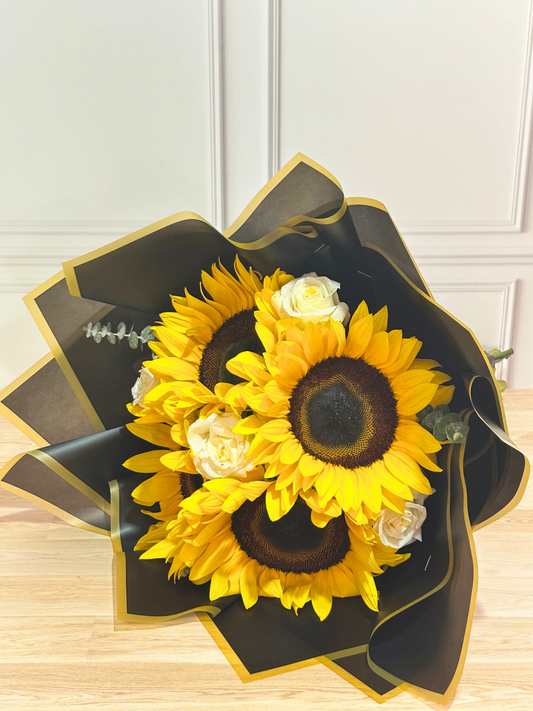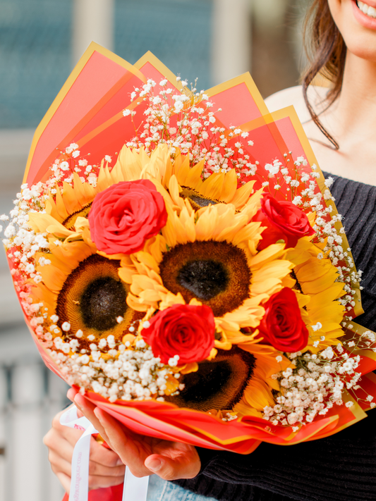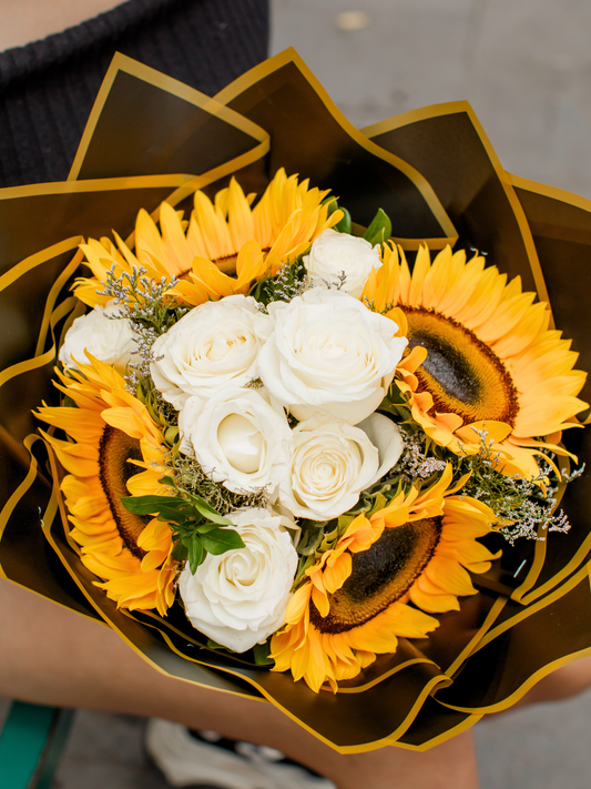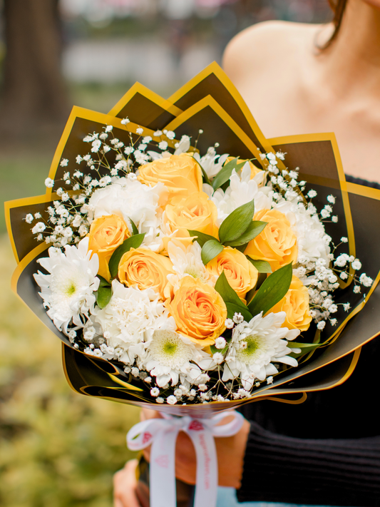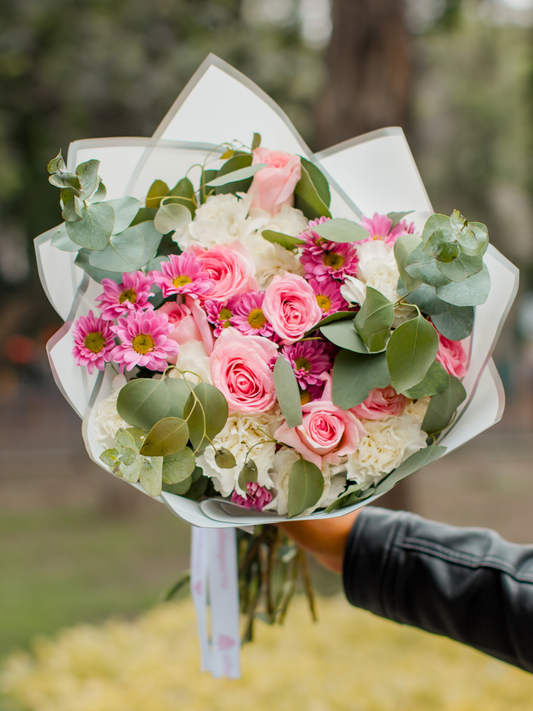 Ramo de Rosas Amarillas, Margaritas y Clavel.