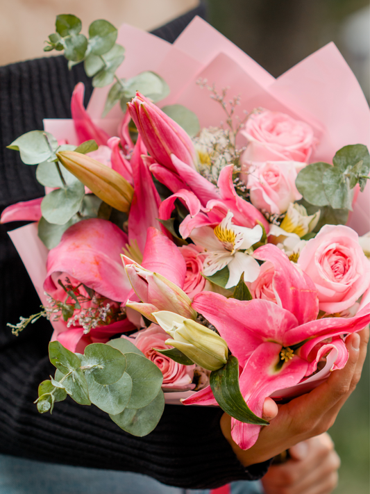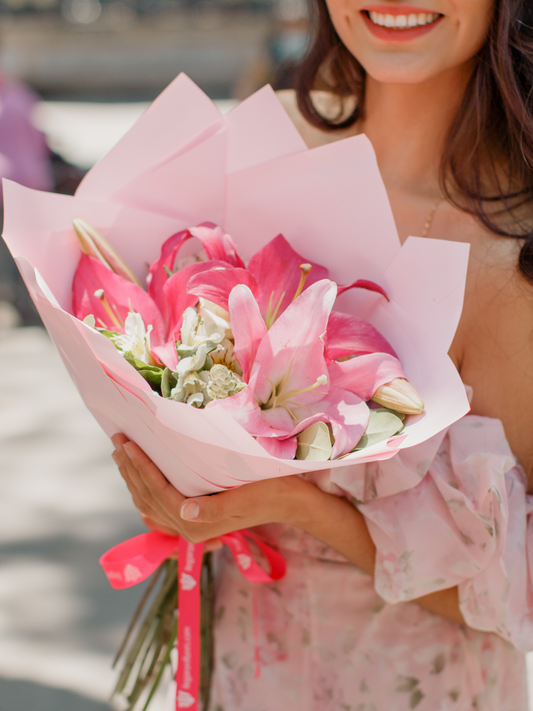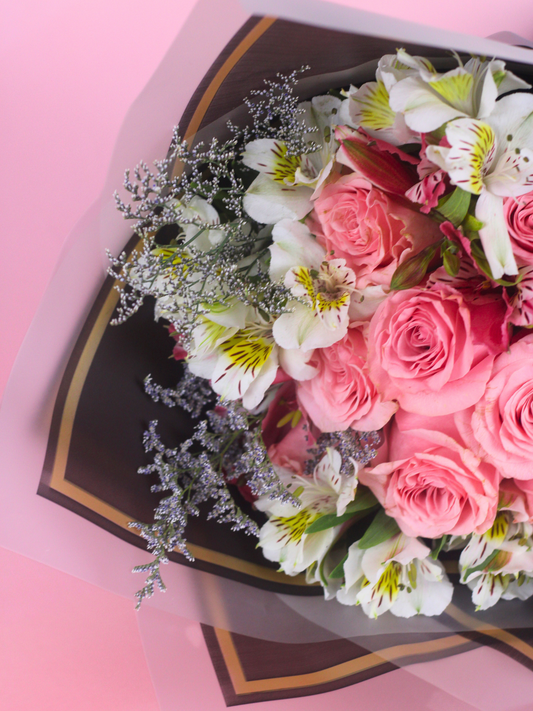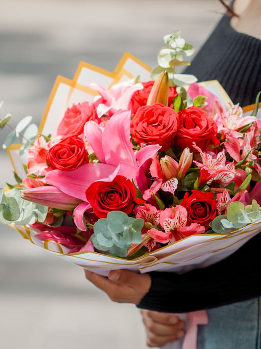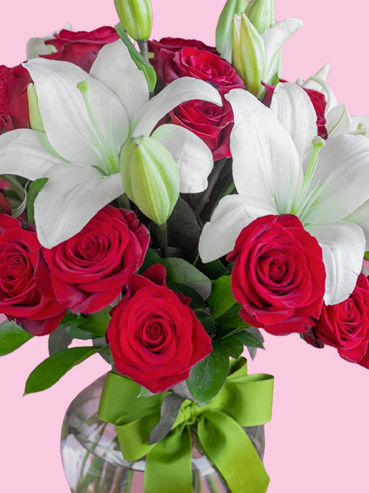 Ramo de Rosas Rojas, Lirios y Astromelias