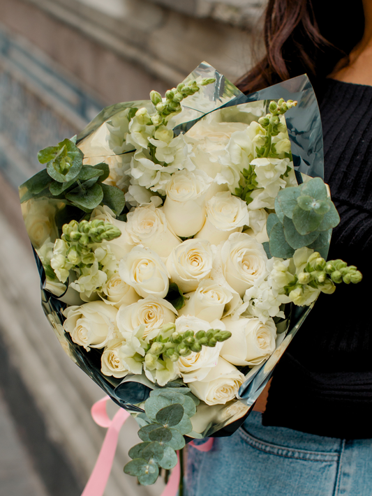 Ramo de Lirios, Rosas y Astromelias Blancas